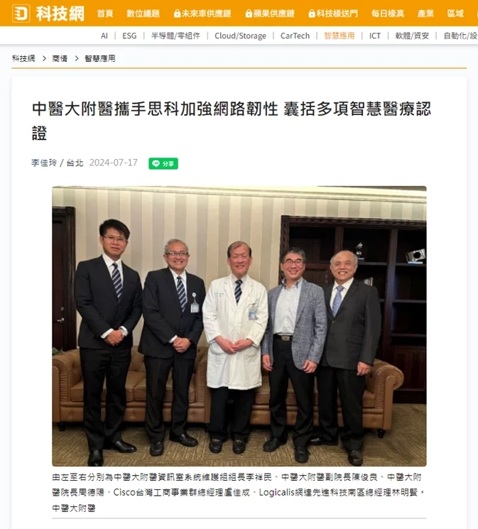 中醫大附醫副院長陳俊良表示,另一方面歸功於思科(Cisco)、Logicalis網達先進科技等外部夥伴的大力協助,引導中醫大附醫理解HIMSS評分要項蘊含的大量艱澀科技辭彙,從而將醫療Know-how與需求對焦到資訊科技,梳理成為具體可行的智慧醫療轉型路徑與實踐方案,讓院方能藉助數位科技助力、營造以病人為中心的精準健康服務。