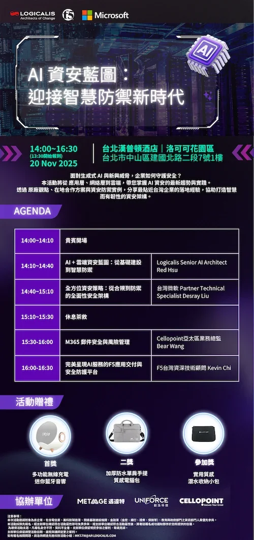 Logicalis Taiwan(網達先進科技)榮獲 Cisco 頒發的「AI 系統創新領航獎(AI System Breakthrough Award)」,表彰我們在 AI 系統整合上的創新成果與實務落地能力。
